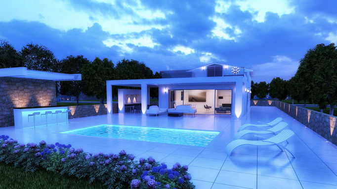 Depending on the m² of the house, the price is €4,400/ m² including swimming pool